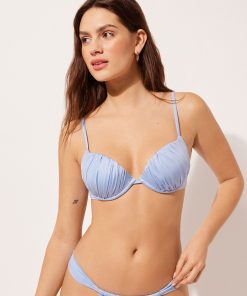 Calzedonia Women’s Bikini Tops Push Up Swimsuit Shiny Satin | 042e – Shiny Satin Light Powder Blue