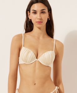 Calzedonia Women’s Bikini Tops Push Up Swimsuit Shiny Satin | 148e – Shiny Satin Buttercream White