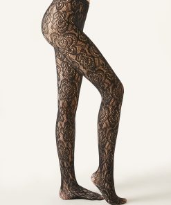 Calzedonia Women’s Tights And Stockings Floral Tulle Tights | 4558 – Black Lace Effect