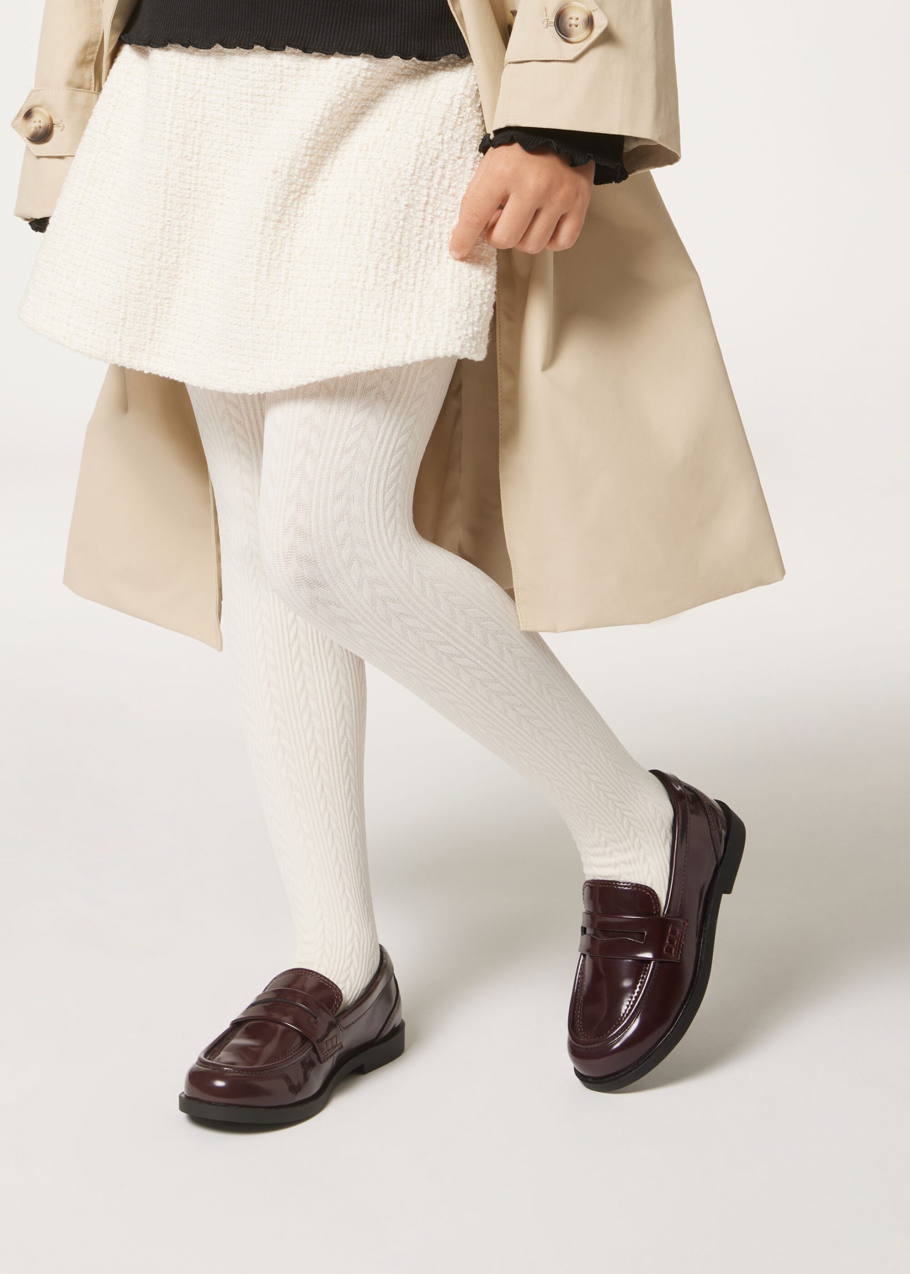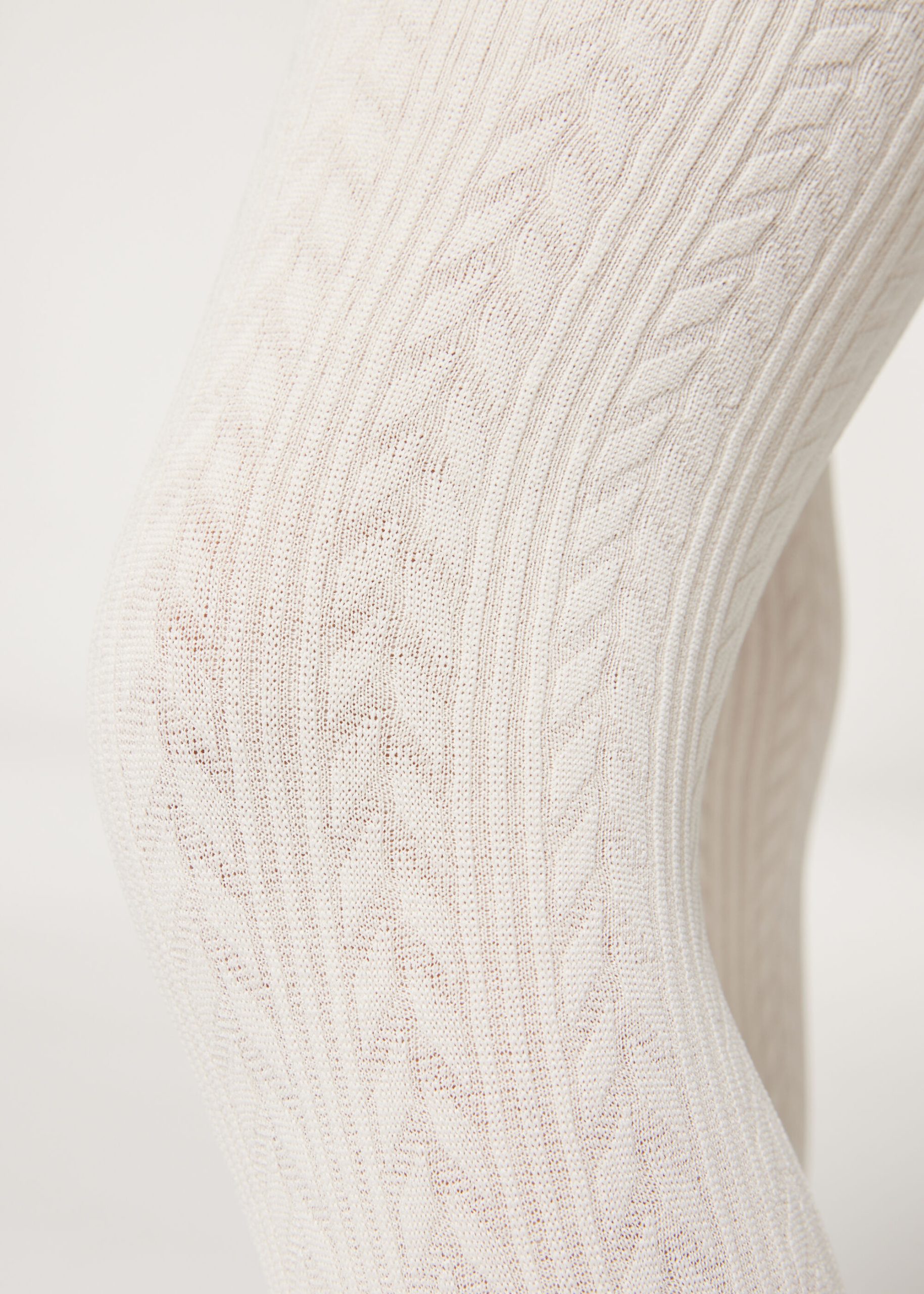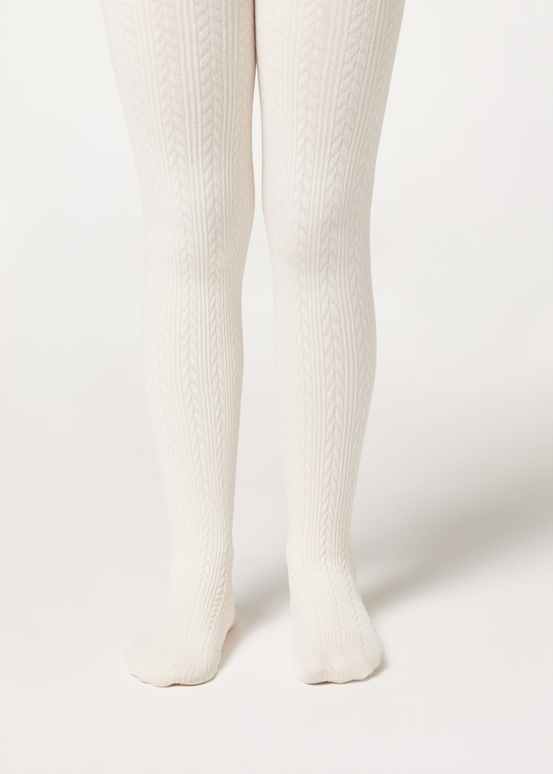 Calzedonia Kid’s Girls (2 – 12 Years) Girls Cable Knit Thermal Tights | 5429 – Bianco Avorio Trecce