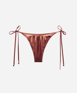 Calzedonia Women’s Bikini Bottoms Brazilian String Swimsuit Bottoms Metallic Skin | 026e – Metallic Natural Almond Brown