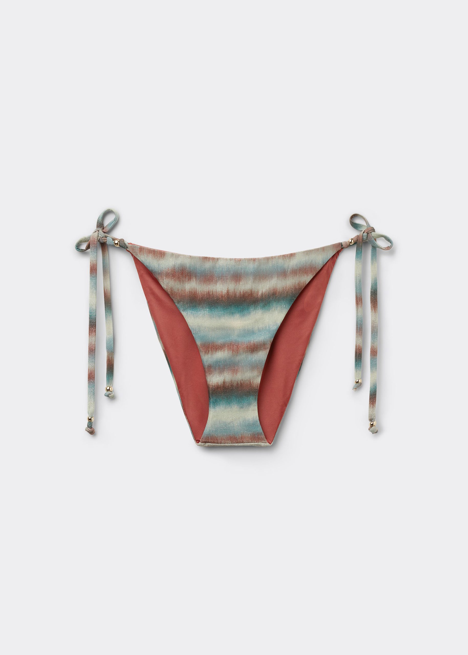 String bikini bottoms with side ties to adjust the fit. The slightly rounded waist at the front allows for both a regular and more high-cut fit, depending on one’s physique. Bright and colorful tie-dye motif embellished with glittery details, on a soft and shimmery fabric, ideal for a bold and original look.