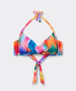 Calzedonia Women’s Bikini Tops Padded Triangle Swimsuit Top Rainbow Shades | 113e – Patterned Rainbow