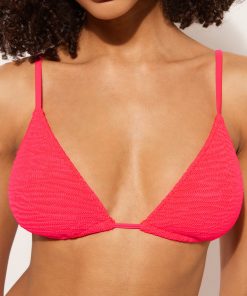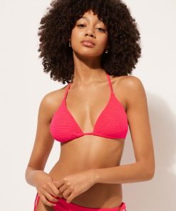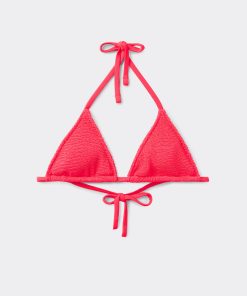 Calzedonia Women’s Bikini Tops Removable Padding Triangle Swimsuit Top Crinkle Waves | 046e – Crinkle Deep Red