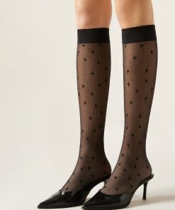 Calzedonia Women’s Hearts And Dots Knee-high Socks | 5018 – Black Hearts Dot