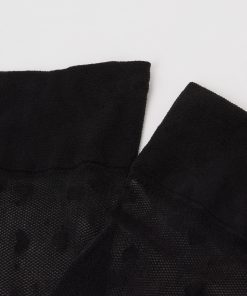 Women’s knee-high socks in tulle 30 denier fabric embellished with a hearts and dots motif and scalloped trim.