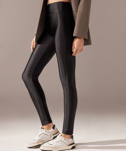 Calzedonia Women’s Leggings And Pants Super Shiny Satin Leggings | 019 – Black