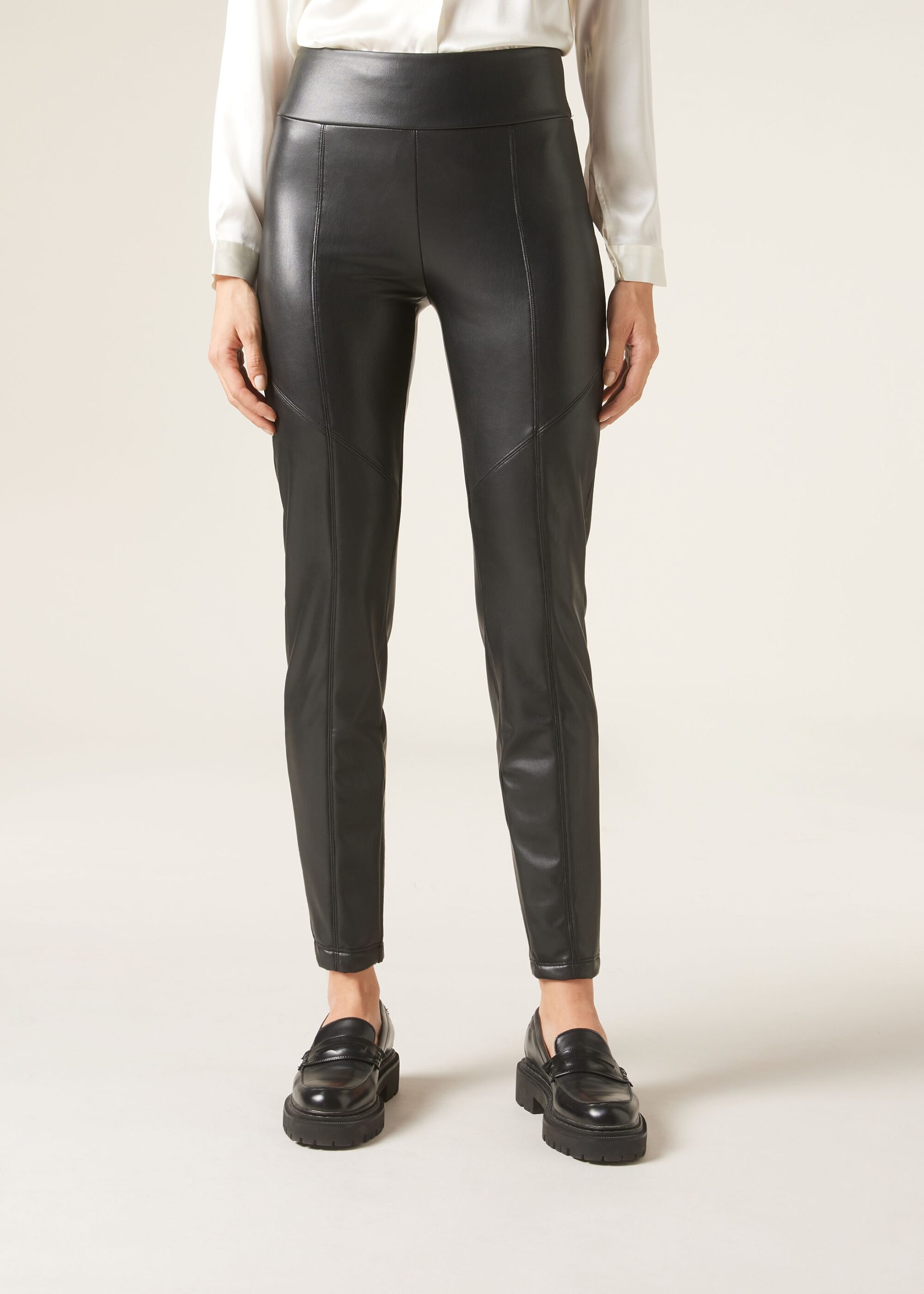 Calzedonia Women’s Leggings And Pants Thermal Coated Effect Leggings | 019 – Black