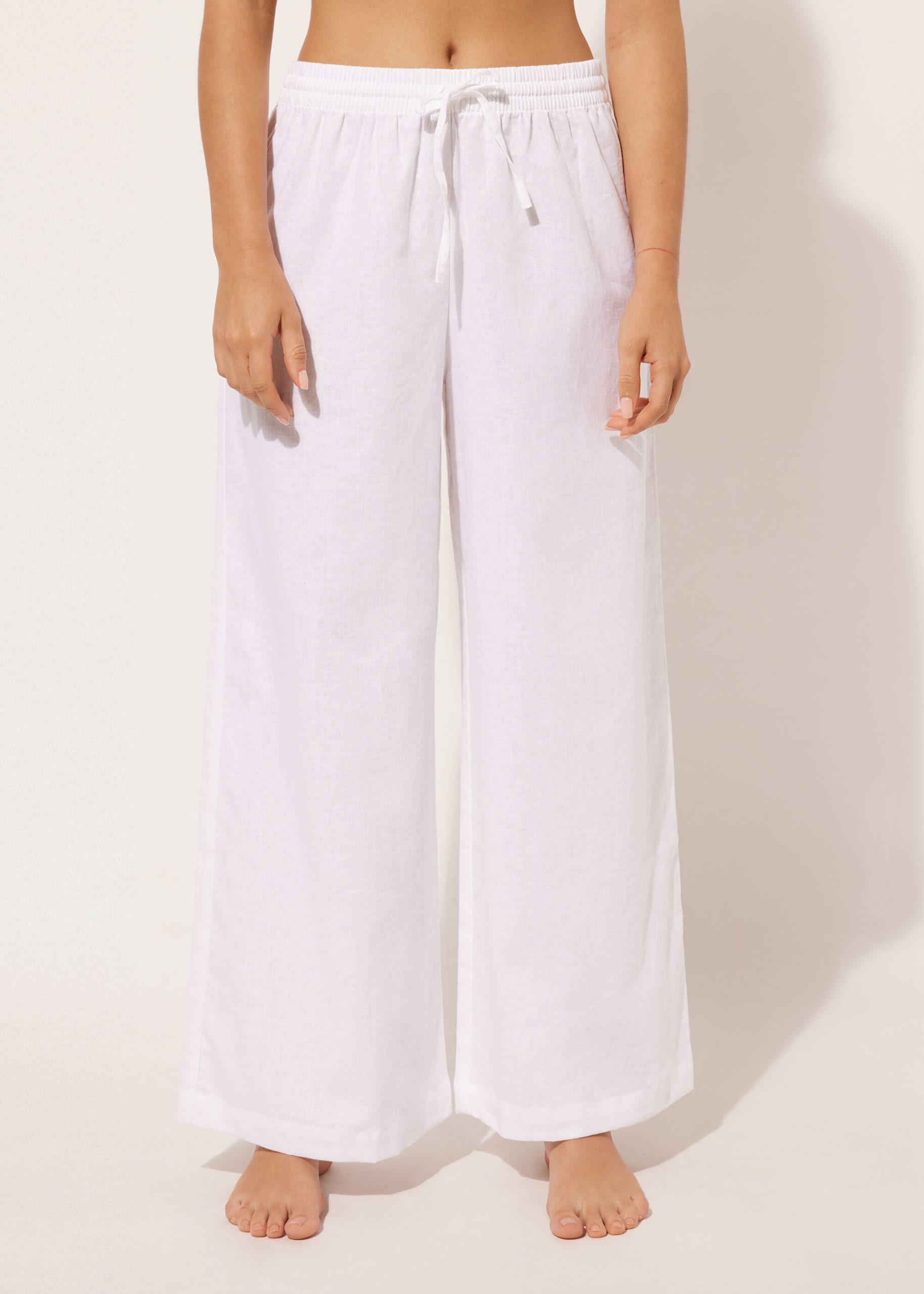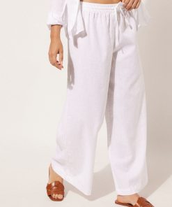 Calzedonia Women’s Swimwear And Cover-ups Cotton And Linen Pants | 895c – White