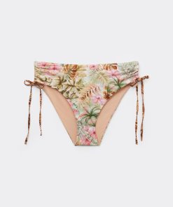 High-waist bikini bottoms with side drawstrings to adjust the fit of the leg openings. A vibrant pattern that combines tropical floral prints and delicate colors with animal print details. Fully lined with invisible seams.
