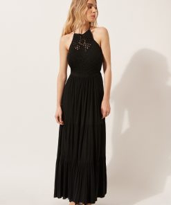 Calzedonia Women’s Swimwear And Cover-ups Long Dress With Crochet Bodice | 894c – Black