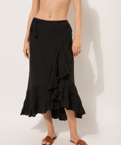 Calzedonia Women’s Swimwear And Cover-ups Long Ruffled Skirt | 894c – Black