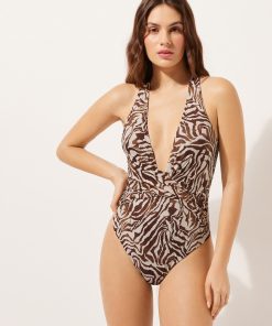 Calzedonia Women’s Swimwear And Cover-ups One Piece Swimsuit Brown Zebra | 028e – Brown Zebra