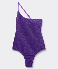 Calzedonia Women’s Swimwear And Cover-ups One-shoulder Swimsuit Metallic Glow | 112e – Bright Metallic Purple