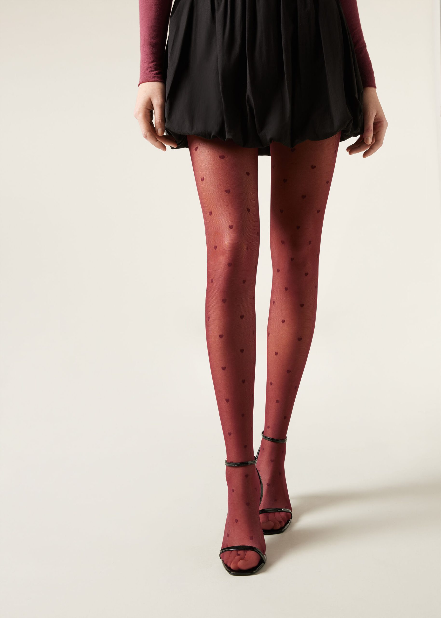 Calzedonia Women’s Tights And Stockings Sheer 30 Denier Mini Heart Tights | 2240 – Bordeaux Red